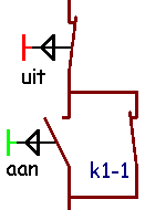 In het stroomkringschema is het relaiscontact (k1-1) parallel aangesloten op het maakcontact. (aan).
