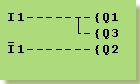 De accolade { geeft aan dat het een gewone schakelaar functie is. Dat houdt in dat Q1 (uitgang 1) aan is zolang er signaal op staat.