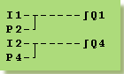 Ingang 1 is verbonden met SQ1 en {Q2.